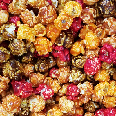 Our flavored popcorn is available online in small packs, large packs, and tins. Or visit us for plain popcorn, candy, and flavored popcorn in other quantities and sizes.